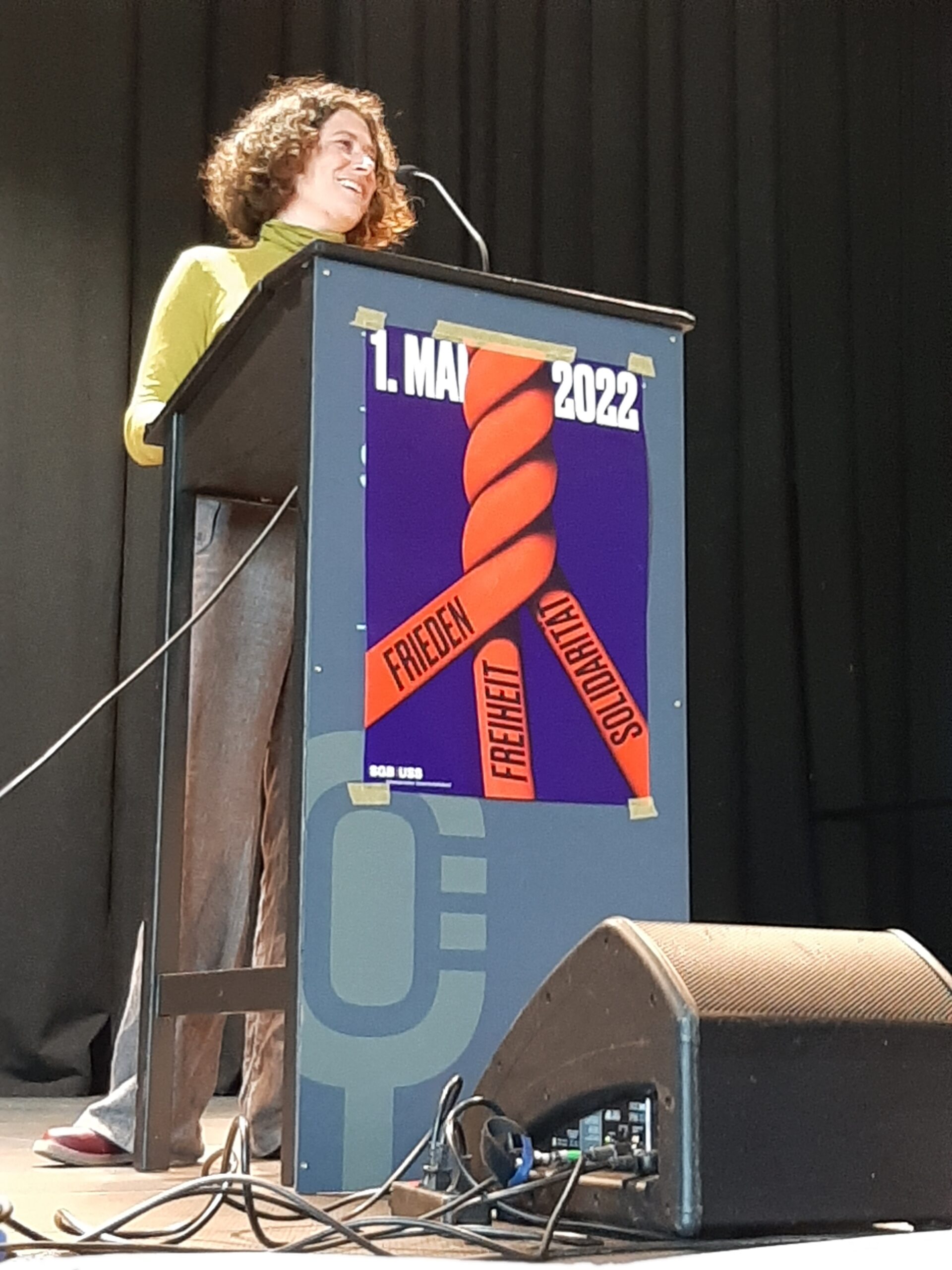 Es ist schön endlich hier zu stehen– vor allem, nachdem ich vorletztes und letztes Jahr schon hätte in Olten sein wollen am 1. Mai. Wie bei so vielem hat uns die Pandemie auch hier einen Strich durch die Rechnung gemacht. Live Stream auf dem Compi ist ja gut und recht – aber das Zusammenkommen, das gemeinsame Einstehen für eine bessere, solidarische Welt kann uns auch ein noch so gelungener Stream ersetzen.